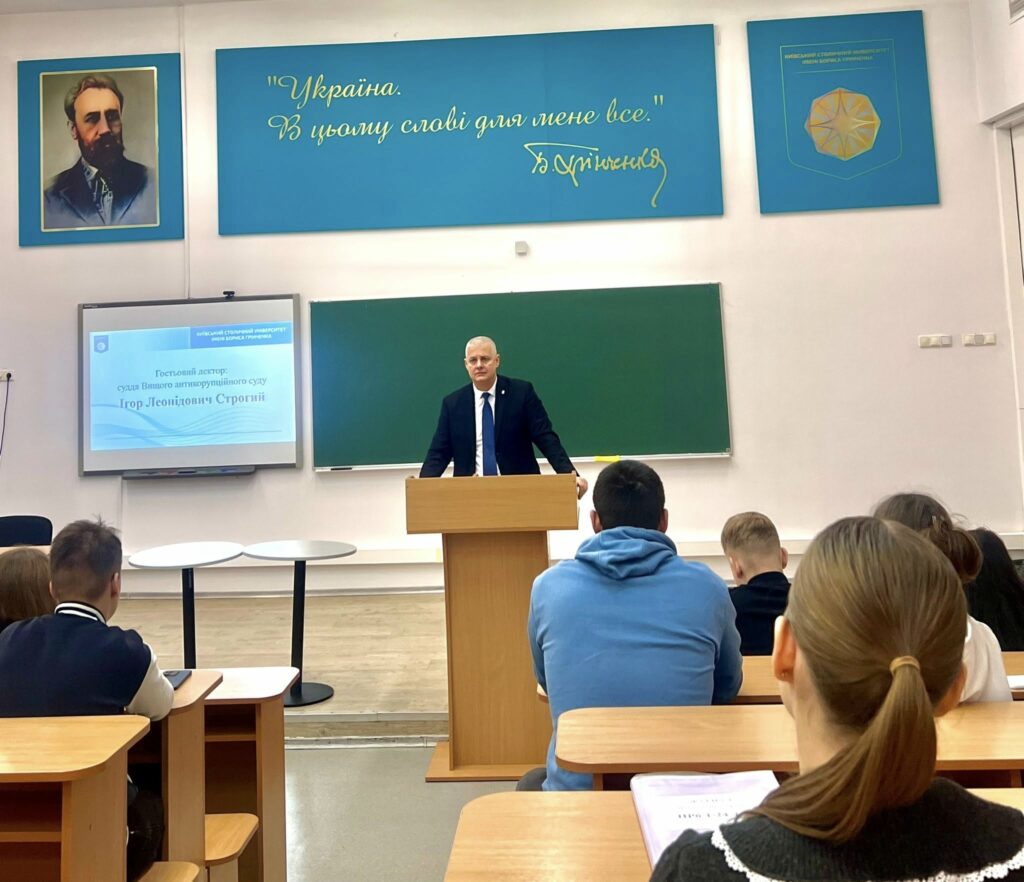 Суддя-спікер Вищого антикорупційного суду Ігор Строгий провів ознайомчу лекцію для другокурсників Київського столичного університету імені Бориса Грінченка.